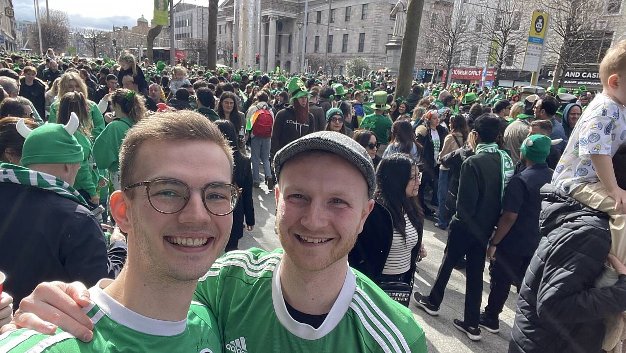 Feiern das Leben - und ihre Spende: Leander (l.) und Hendrik Pieres beim St. Patricks Day in Irland. | © Privat