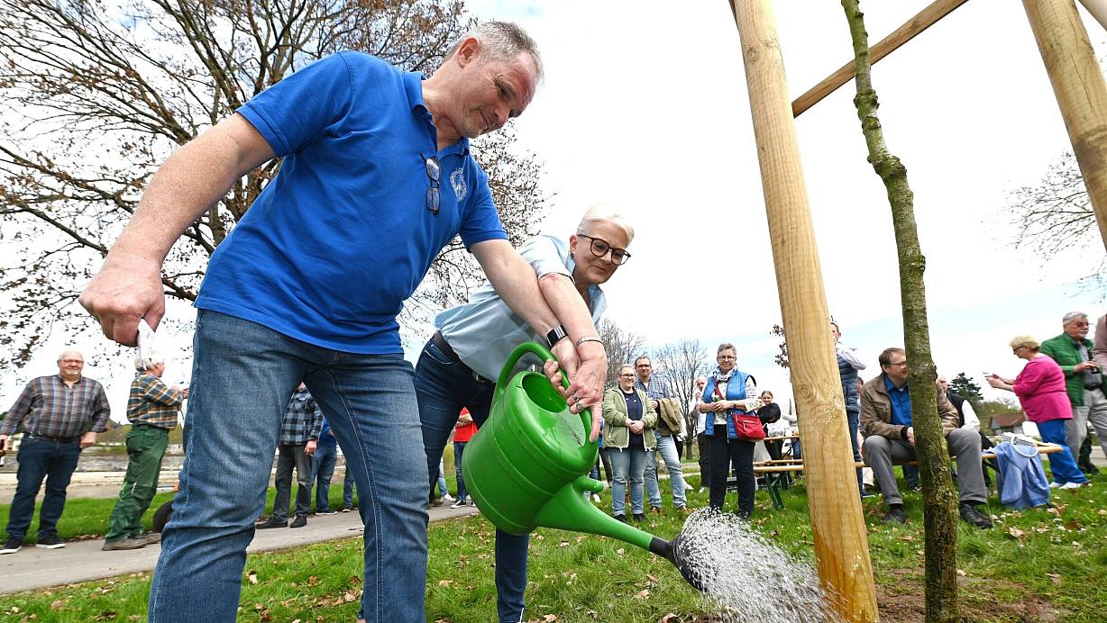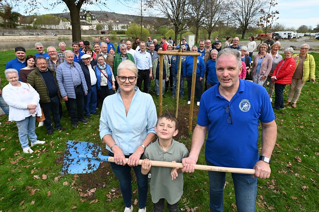 Höxter. Höxters Schützenkönigspaar setzt eine Tradition fort: Die Regenten der Schützengilde Höxter von 1595, Dieter und Martina Kuhlebrock, haben eine neue „Königseiche“ auf dem Floßplatz nahe dem Weserufer gepflanzt. Bei strahlendem Sonnenschein wurde die sogenannte „Königsallee“ um eine Stieleiche (Quercus Robur) reicher.