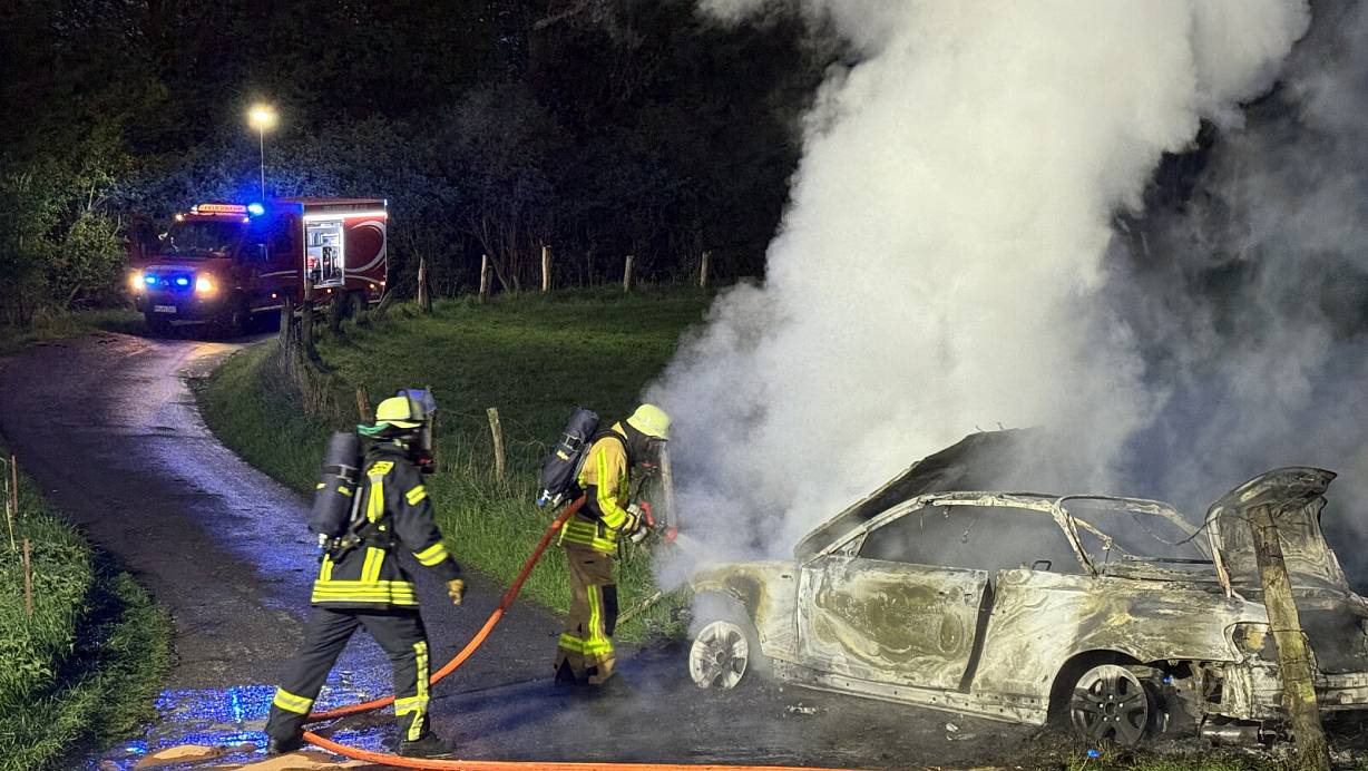 Im Ortsteil Bruchhausen ist die Feuerwehr am frühen Samstagmorgen im Einsatz. Das Fahrzeug steht verlassen auf einem Feld.