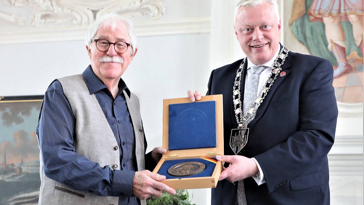 Festredner Herbert Günther (l.) bekam von Bürgermeister Daniel Hartmann die Fallersleben-Plakette überreicht. | © Simone Flörke