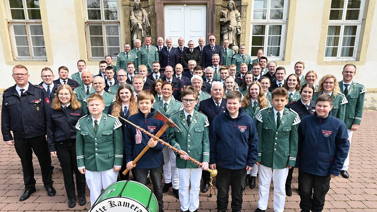 Beim gemeinsamen Jubiläumsfoto haben deshalb Tambourmajor Lars Grothe und Löschgruppenführer Sebastian Ritter die Feuerwehraxt und den Tambourstock miteinander kreuzen lassen. Das sei ein Zeichen für die guten Beziehungen miteinander, meint Ritter. „Die Vorfreude auf das bevorstehende Fest ist schon sehr groß nach Corona“, erklärt der Vorsitzende des Feuerwehr-Fördervereins von Brenkhausen, Tim Drüke.