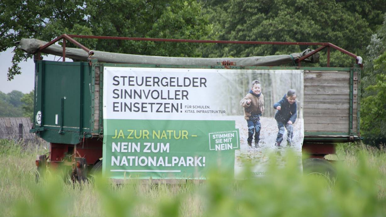 Mit großen Bannern und kleinen Plakaten fährt die CDU eine aufwendige Kampagne gegen den Nationalpark im Kreis Höxter. | © David Schellenberg