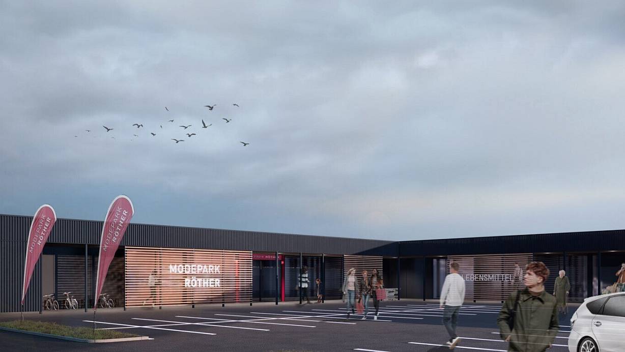 Ein erster Entwurf zeigt, wie das Fachmarktzentrum künftig aussehen könnte. | © Privatbank Hauck\, Aufhäuser und Lampe