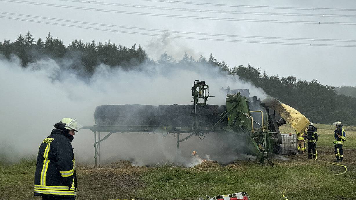 Alarmiert wurden die Einsatzkräfte nach Angaben der Feuerwehr um 15.28 Uhr. Als die ersten Feuerwehrleute wenige Minuten später eintrafen, brannte die Presse, die auf einem Feld eines abgelegenen Reiterhofes stand, bereits lichterloh. Die Zugmaschine war bereits abgekoppelt und außerhalb des Gefahrenbereichs gebracht worden.