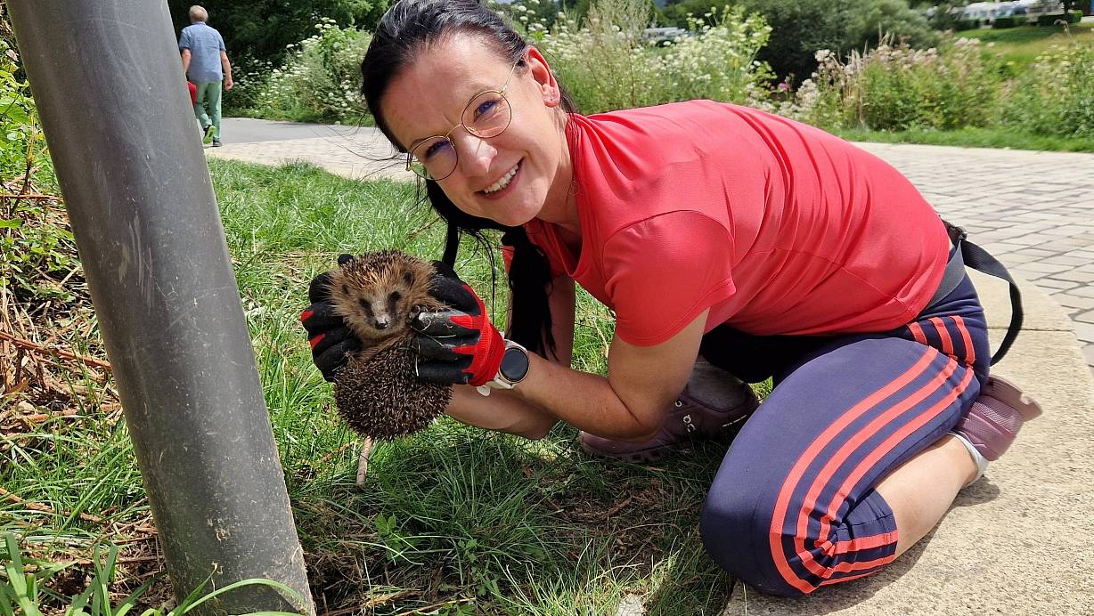 Höxter. Eine angehende Notfallsanitäterin rettet einen Igel aus seiner Zwangslage: „Nicht immer benötigt es die Feuerwehr zur Tierrettung, wenn man selbst handeln kann“, dachte sich Nicole Baltrusch aus Höxter. Die 44-jährige Tierliebhaberin und Mitarbeiterin des Rettungsdienstes der Stadt Höxter geht regelmäßig an der Weserpromenade spazieren.