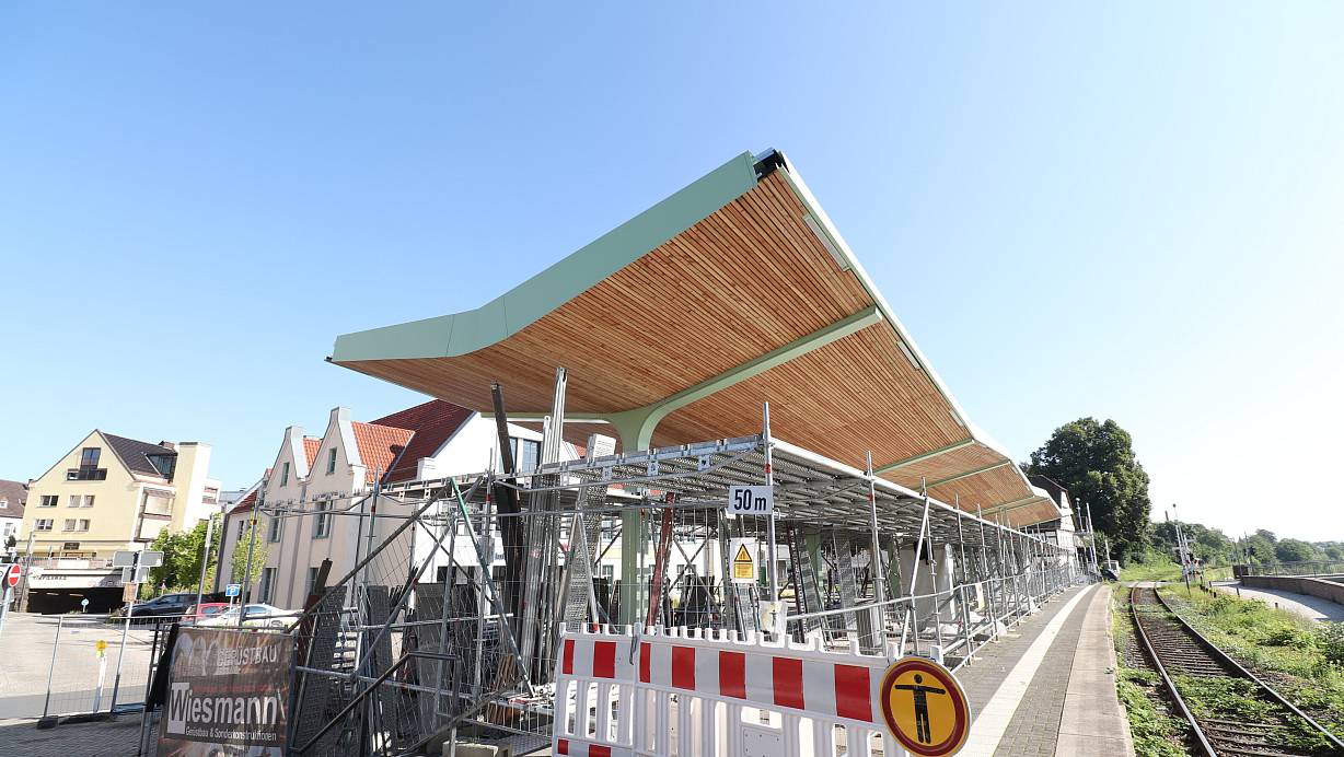 Höxter. Das sieht ja plötzlich ganz anders aus: Das Gerüst rund um das Dach am Bahnhof in Höxter wurde am Montagmorgen abgebaut. „Die Restarbeiten zur endgültigen Fertigstellung des Flugdachs am Bahnhaltepunkt Höxter-Rathaus sind weitestgehend abgeschlossen“, sagt Stadtsprecher Markus Finger auf Nachfrage der „Neuen Westfälischen“.