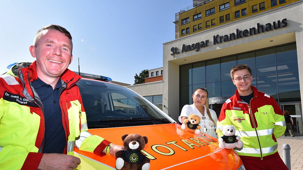 Diese Teddys seien mehr als nur ein Spielzeug: „Sie sind ein Zeichen der Menschlichkeit und ein wertvolles Instrument für uns im Rettungsdienst“, betonte Dürbaum, der diese Übergabe in Doppelfunktion organisiert hatte.