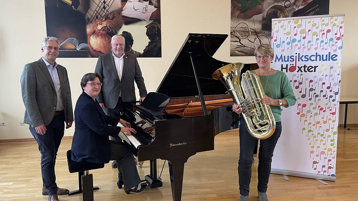 Dezernent Stefan Fellmann (v. l.), Musikschulleiterin Klaudia Knapp, Bürgermeister Daniel Hartmann und Abteilungsleiterin Claudia Pelz-Weskamp. | © Stadt