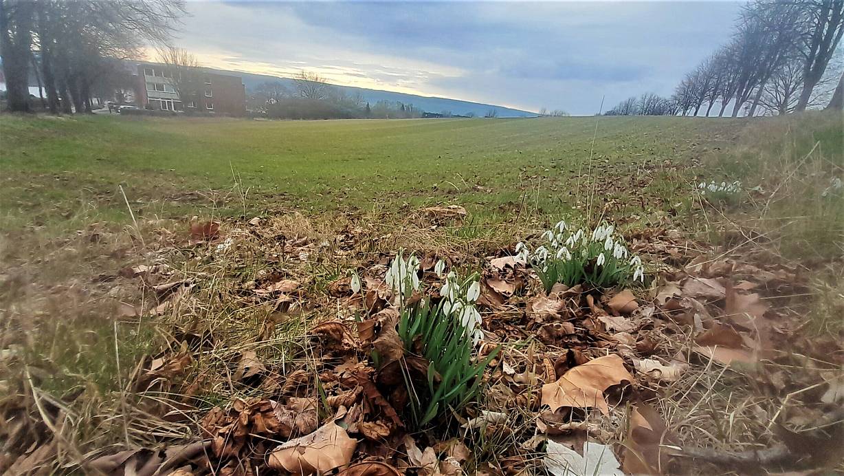 Bislang gibt es auf dem Areal "Im Flor" in Höxter einen Bolzplatz - und Schneeglöckchen. | © Simone Flörke