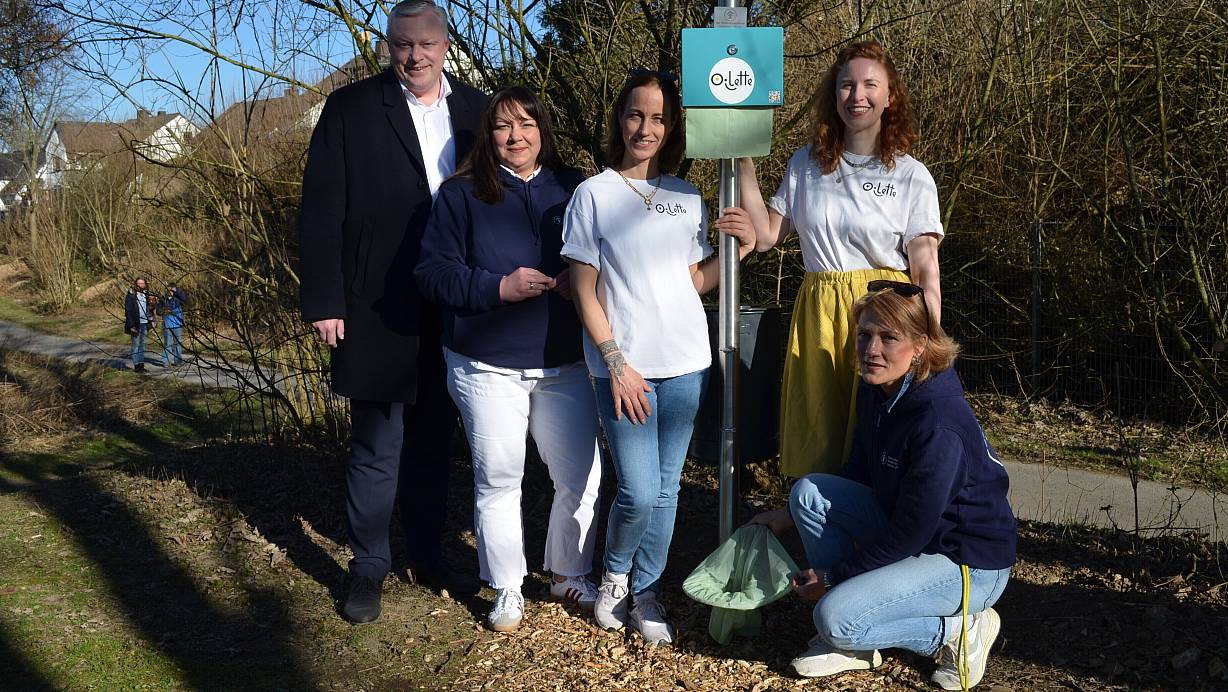 Bürgermeister Daniel Hartmann (v.l.), Jasmin Erdmann (Kinderschutzbund), die beiden Gründerinnen Vanessa Senses und Kathrin Valencia sowie Kinderschutzbundvorsitzende Sina Schreiber präsentieren die Oilette - Höxter erstes Klo für Kinder. | © Nicole Fischer