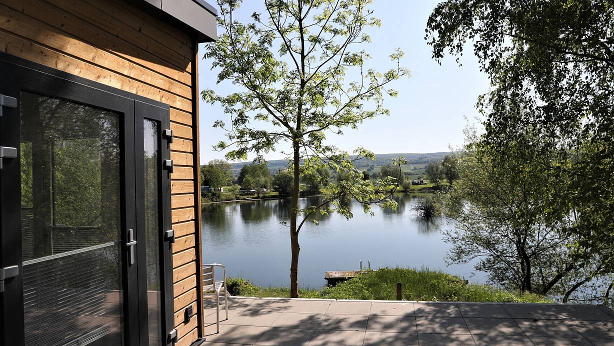 Das Chalet am Kleinen See auf dem Freizeitgelände Ahlemeyer bei Höxter soll im Sommer öffnen und bietet Ruhe und Erholung mit tollem See-Blick. | © Simone Flörke
