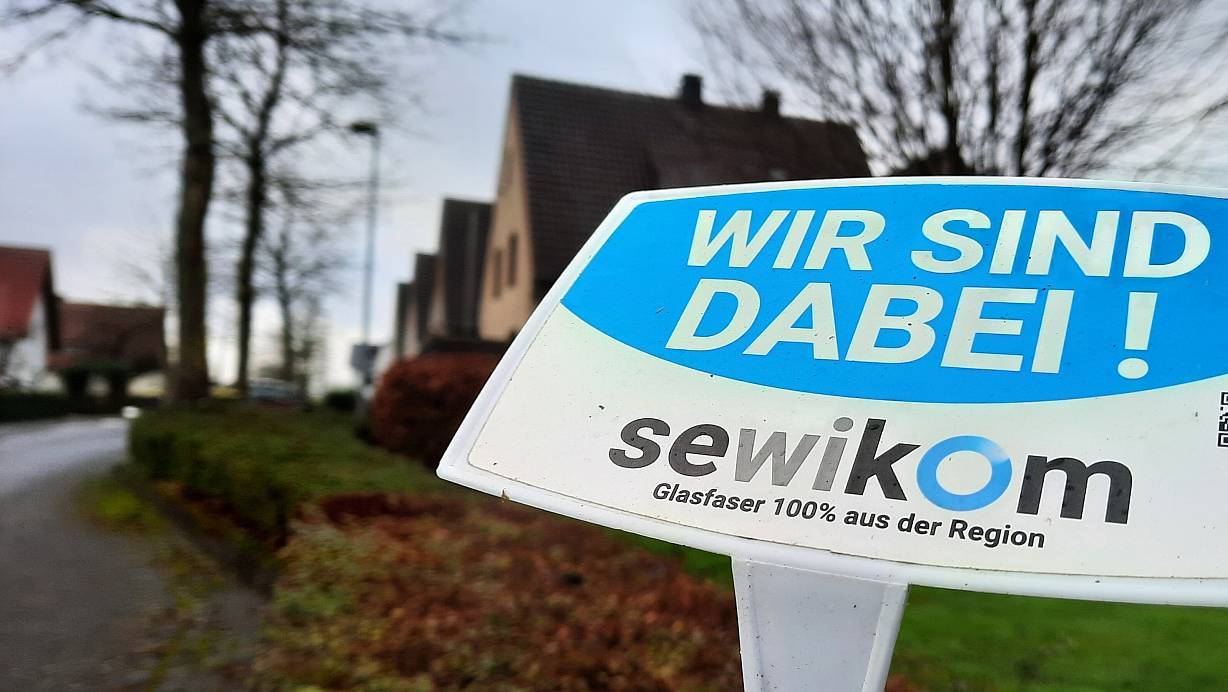 Nach Vertragsabschluss steckten Sewikom-Mitarbeiter unzählige dieser Schilder in die Vorgärten im Kreis Höxter. Danach beginnt für viele Kunden das Warten auf den Ausbau. | © David Schellenberg
