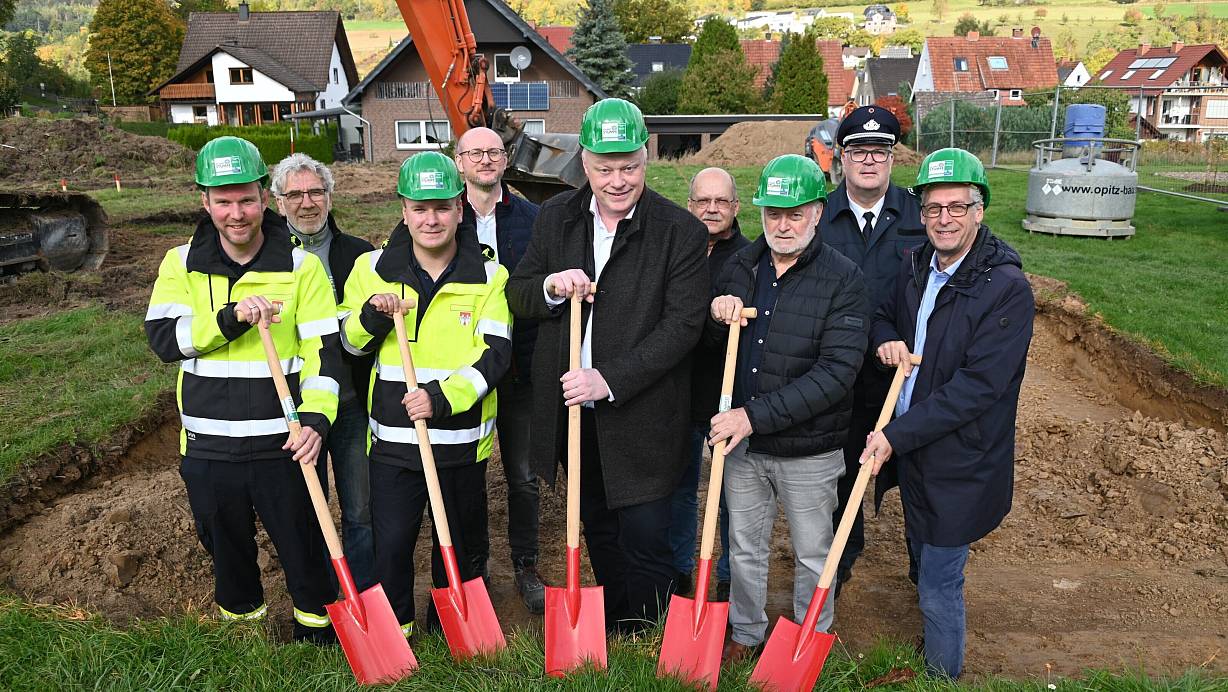 Symbolischer Spatenstich: Das vom Tornado zerstörte Feuerwehrgerätehaus wird neu gebaut. | © Thomas Kube