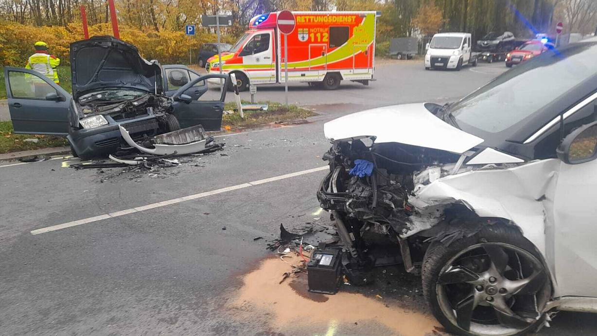 Zwei Autos sind am Ortseingang offenbar leicht versetzt frontal zusammengestoßen. Der Rettungseinsatz läuft.