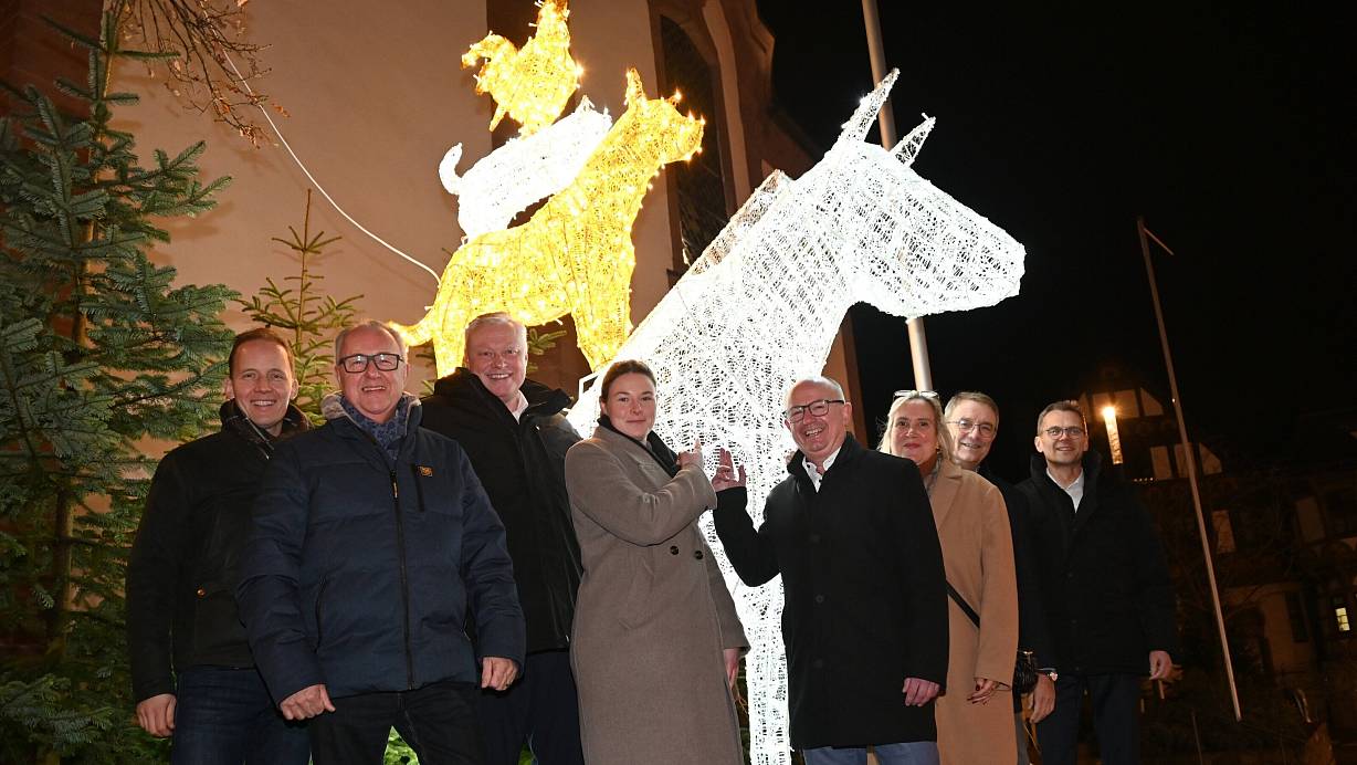 Höxter. Die Märchenwelt in Höxters Innenstadt ist um eine weitere Attraktion reicher. Seit wenigen Tagen thront die bekannte Tierpyramide der Bremer Stadtmusikanten vor der Nicolaikirche. Mit dem Start des Höxteraner Weihnachtsmarktes am kommenden Donnerstag werden die Figuren von der Dämmerung an bis 22 Uhr in Gold und Silber erstrahlen und unübersehbar über allen thronen, die durch die Fußgängerzone flanieren. Nach Hänsel und Gretel samt Hexenhaus im Jahr 2023 und der Dornröschen-Kutsche im vergangenen Jahr gibt es in Höxter nun ein drittes stimmungsvolles Highlight in der Weihnachtszeit.