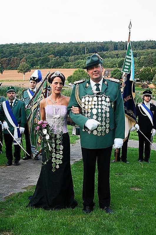 Nach begrüßenden Worten von Volker Struck, Vorsitzender der Schützengesellschaft, und des Bürgermeisters bekamen König Thomas Helmchen und Königin Tanja Marx die Kleinodien überreicht.