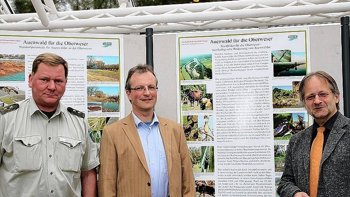 "Um Auenwälder neu anzusiedeln, sind die Voraussetzungen hier an der Oberweser besonders gut", sagt Professor Ulrich Riedl, der am Fachbereich 9, Landschaftsarchitektur und Umweltplanung lehrt. "Hier sind Überflutungen überhaupt noch möglich und noch keine Deiche gebaut. Das Brückfeld und das Corveyer Feld sind große Flächen, die regelmäßig von der Weser überflutet werden. Diese Gebiete sind eine gute Möglichkeit, wieder Auenwälder entstehen zu lassen", so der Hochschulprofessor. In Auenwäldern wachsen traditionell Arten, die gut