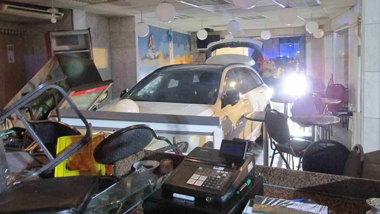 Ein 51-jähriger Autofahrer hatte während der Fahrt eine Herzatttacke erlitten und war mit seinem Mercedes in das Lokal im Tünneckenhagen/Ecke Hafendamm direkt durch die Eingangstür in das Lokal gekracht. Kurz vor dem Verkaufstresen kam der Wagen zum Stillstand.