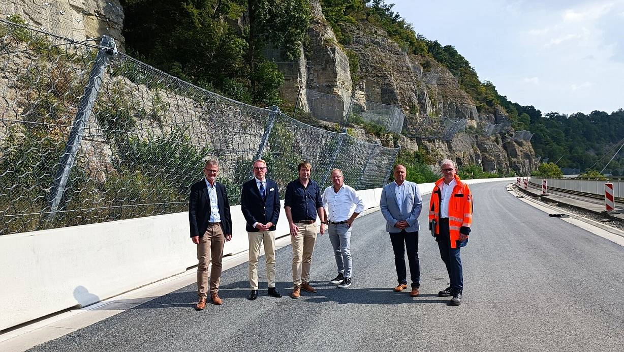 „Ein derartiges Mammutprojekt steht und fällt mit den Menschen, die vor Ort ihre Arbeitskraft einsetzen. Unter anderem mit denen, die sich für aufwendige und nicht ungefährliche Hangsicherungsmaßnahmen in schwindelerregende Höhen begeben haben, und das bei Temperaturen, die teils deutlich über 40 Grad lagen“, so Oehlmann über die vielen Höhenarbeiter, die im Laufe der Jahre die Hänge bei Steinmühle erkundet und bearbeitet hatten.