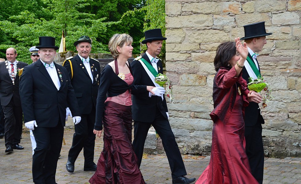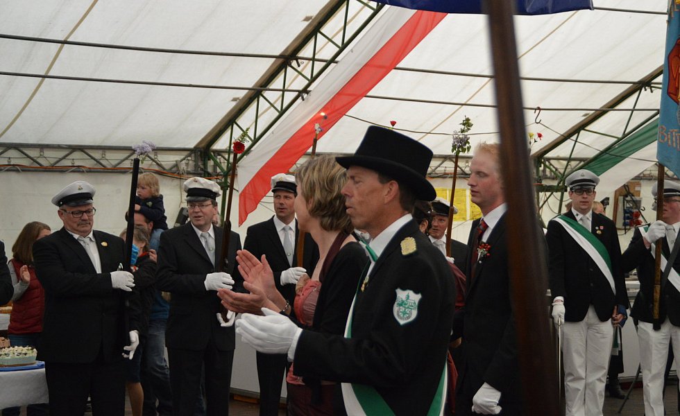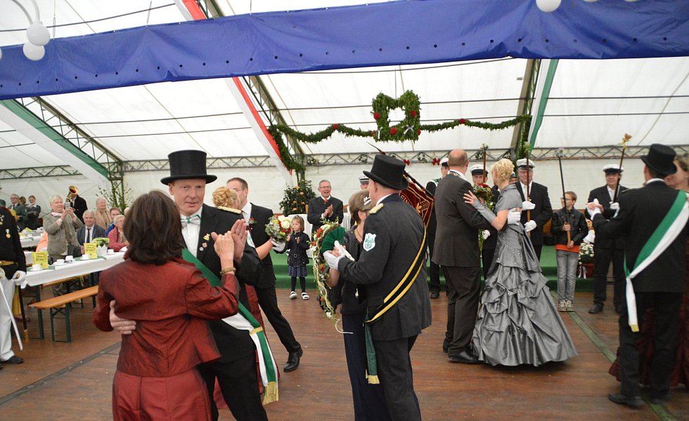 Die Schaulustigen durften sich trockenen Wetters erfreuen, auch wenn die Sonne sich manchmal rar machte. Die Stimmung konnte im Festzelt zum Tanz der Königspaare und Hofstaat nicht besser sein. Am Abend heizte die Tanzband "Dolce Vita" das Festzelt an der Abtei noch einmal richtig ein und ließ das Schützenfest ausklingen.