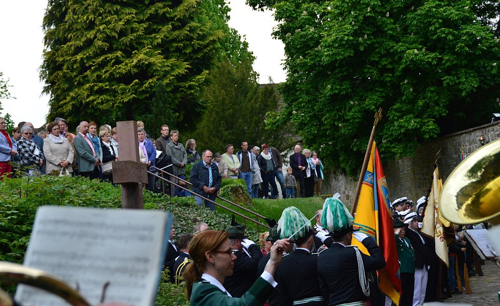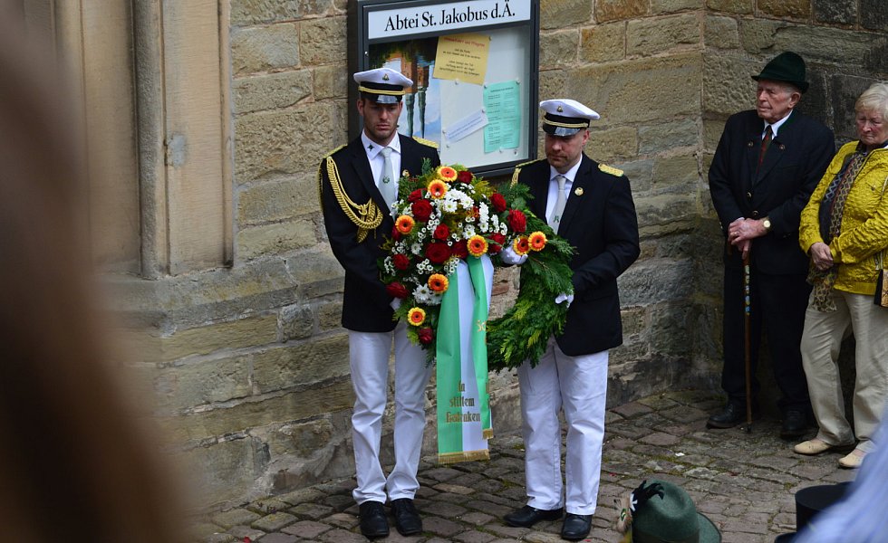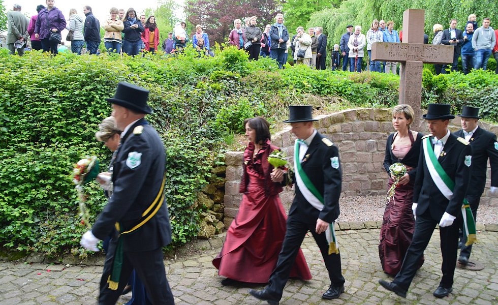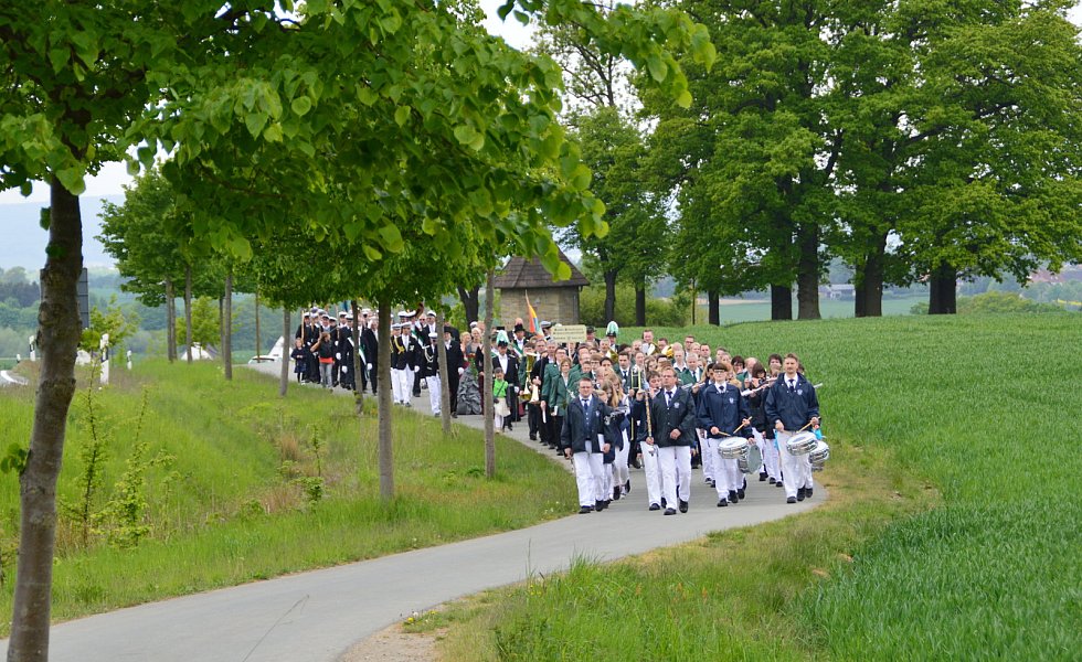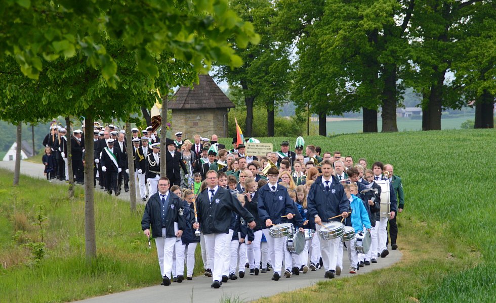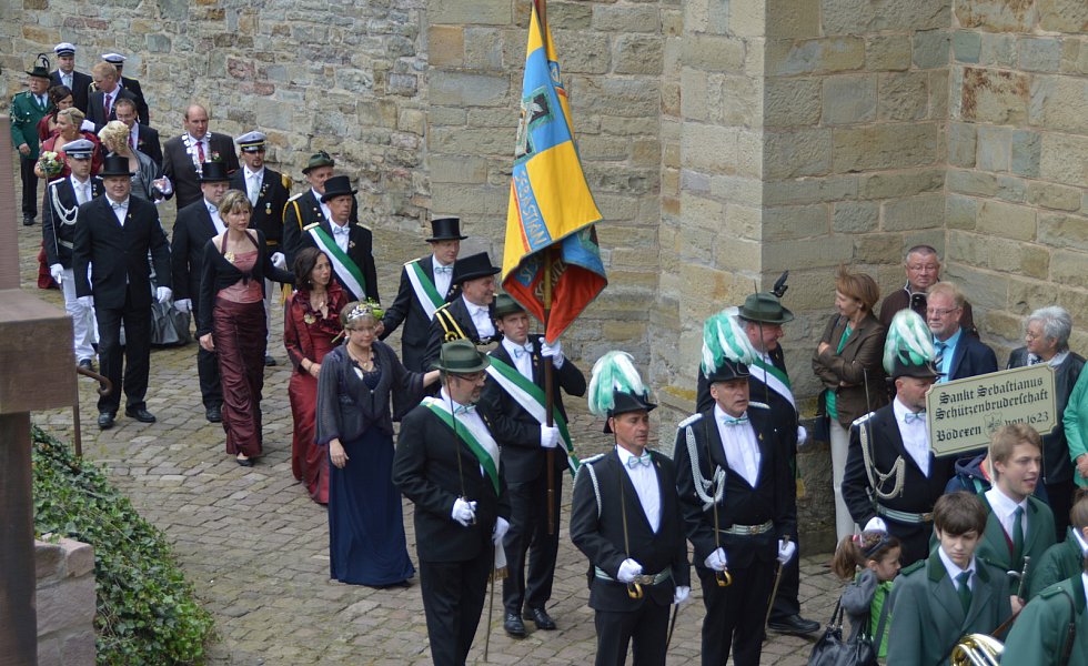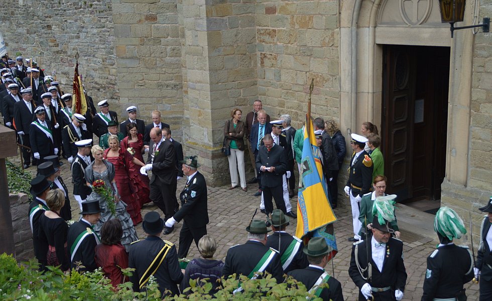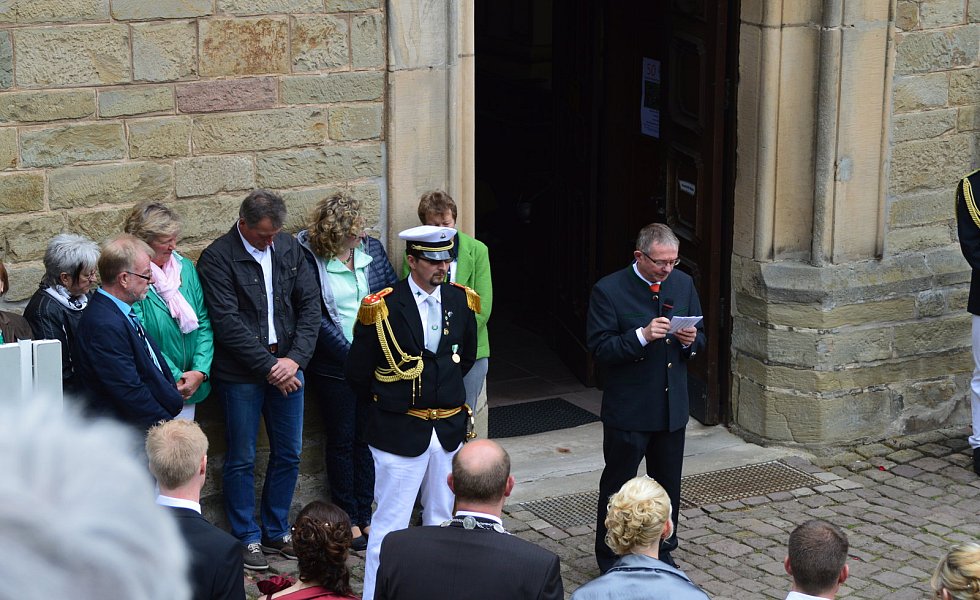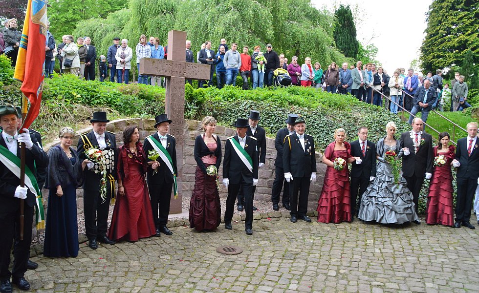 Während am Samstag der Zapfenstreich auf dem Plan stand, füllte Sonntag der Festumzug mit Gefallenenehrung das Programm. Neben der St.-Peter-und-Paul-Schützenbruderschaft aus Vörden wurden am Sonntag auch Königspaar und Hofstaat aus Bödexen eingeladen - als Symbol der Verbundenheit und Freundschaft. Mit einem Kranz ehrten die Schützen die Gefallenen aus den Kriegen und verdeutlichten, dass sie nicht in Vergessenheit geraten dürfen.