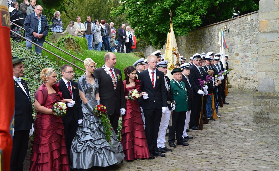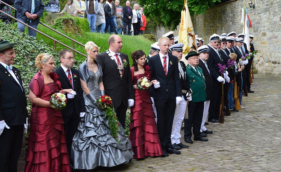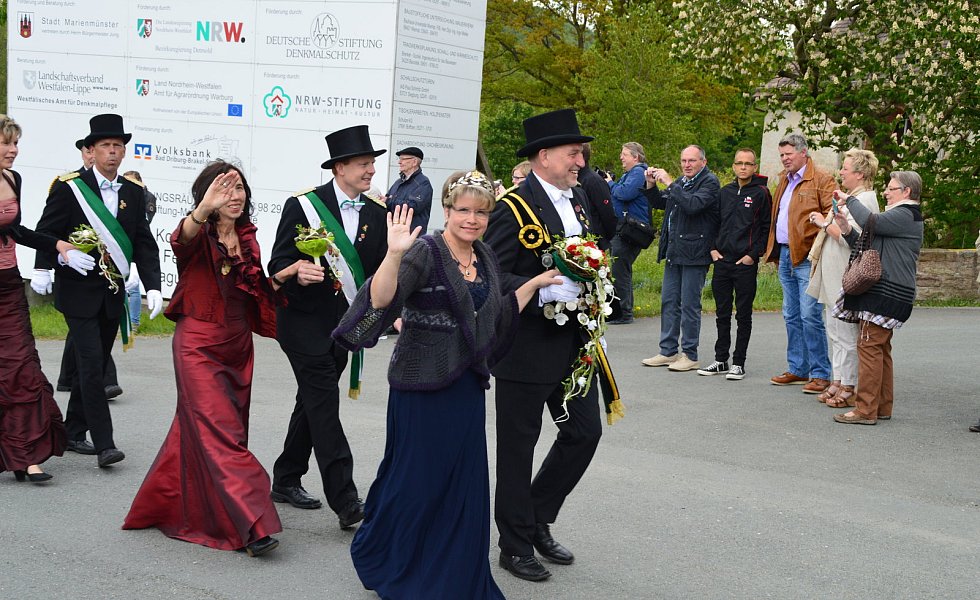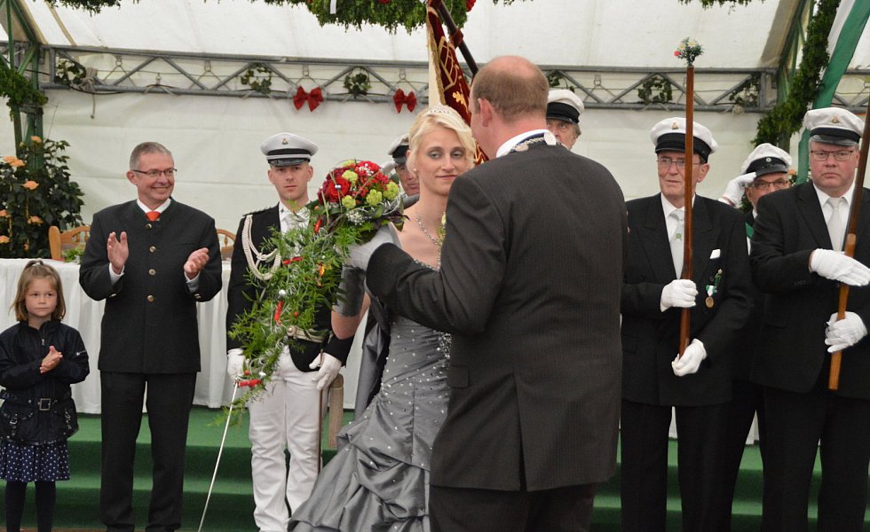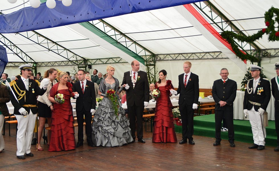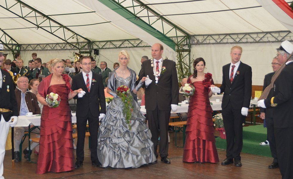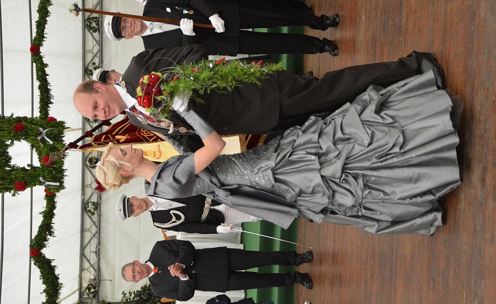 Born/Münsterbrock. Bereits vor 25 Jahren amtierte die Familie Gemmeke auf dem Thron der St.-Jakobus-Schützenbruderschaft Born-Münsterbrock. Im diesjährigen Jubiläumsjahr sollte es wieder so sein: Nachdem sich Vater Paul Gemmeke vor 25 Jahren mit seiner Frau Agnes auf den Thron schoss, schaffte es nun sein Sohn Christoph Gemmeke mit seiner Lebensgefährtin Daniela Wentzlaff. Zum Hofstaat gehörten Fabian Meyer mit Lorena Platte sowie David und Ann-Kathrin Hensel.