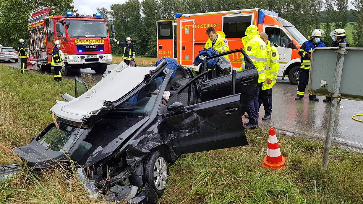 Eine Frau erleidet schwere Verletzungen. Ein Rettungshubschrauber ist angefordert.