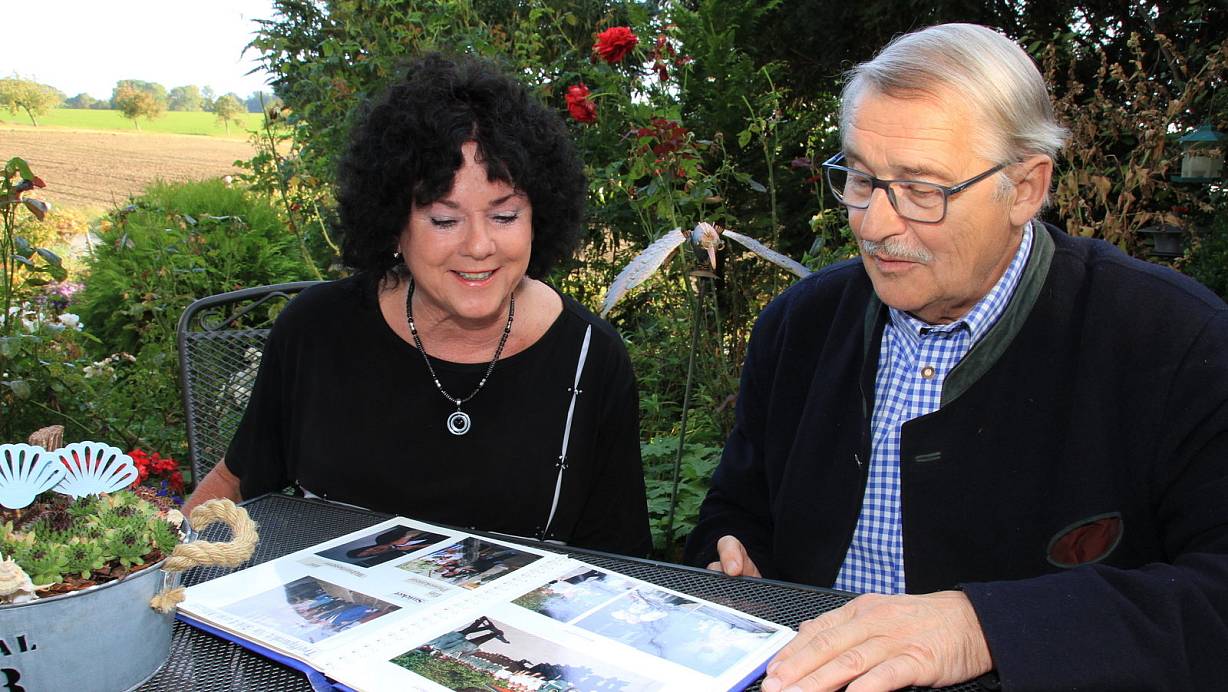 Eva und Elmar Stricker schwelgen in Erinnerungen. Das Fotoalbum haben sie von den Schönewaldern geschenkt bekommen. | © David Schellenberg
