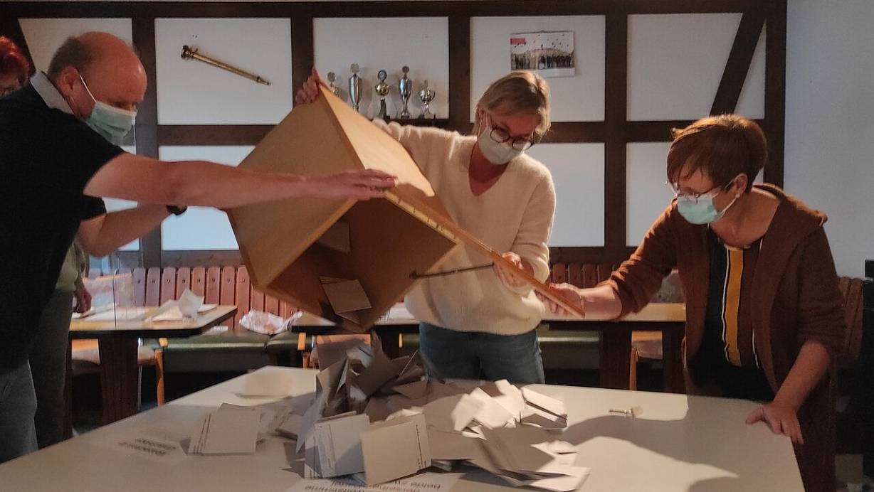 Ausgeschüttet is: Klaus Multhaupt (v. l.), Nicole Loges und Sandra Herwing leeren die Wahlurne. Fotos: Svenja Ludwig | © Svenja Ludwig