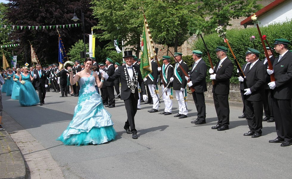 Sommersell. Es konnte schöner nicht sein: Die Sonne strahlte bei frühsommerlichen Temperaturen von einem fast strahlend blauen Himmel, die Sommerseller und ihre zahlreichen Gäste waren in ausgelassener Schützenfeststimmung. Im Mittelpunkt standen natürlich auch in dem 650-Einwohner-Dorf die Majestäten - in diesem Jahr Katharina und Dirk Müller. Doch dieses Mal war bei aller Tradition auch einiges anders.