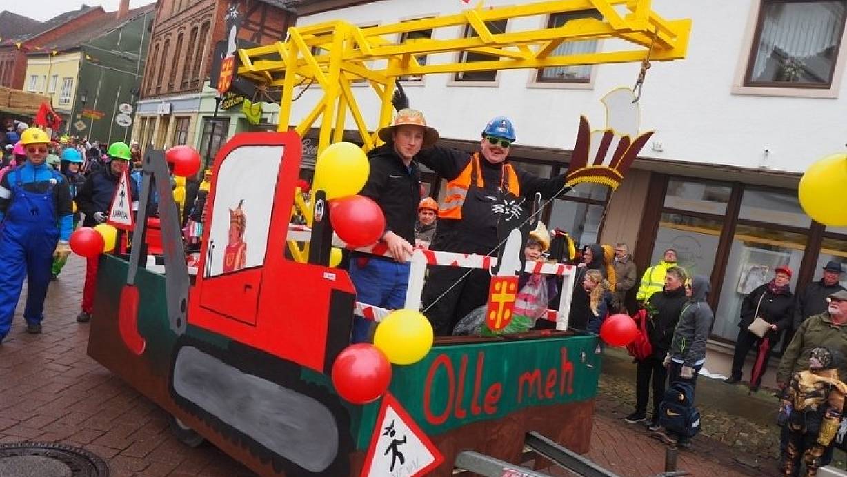Kühle Temperaturen und steife Brise halten die Nieheimer Narren beim Rosenmontagszug nicht auf.