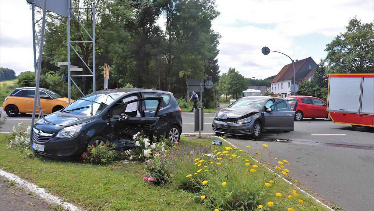 Eine 72-jährige Frau fuhr nach Angaben der Polizei am Donnerstag um 11.10 Uhr mit ihrem Opel Meriva die L951 aus Merlsheim kommend in Fahrtrichtung Oeynhausen. An der Kreuzung zur L755 achtete sie nicht auf einen von links kommenden VW Golf, der in Richtung Nieheim unterwegs war.