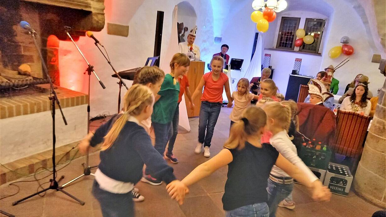 Dann ging es aber los und die Mini-Garde zeigte eindrucksvoll, wie man einen Tanz bei beengten Platzverhältnissen aufführt. Prinz Dirk durfte sich in Abwesenheit seiner Prinzessin Marion über zwei Porträts freuen, die Marina Peine in monatelanger Arbeit gemalt hat.