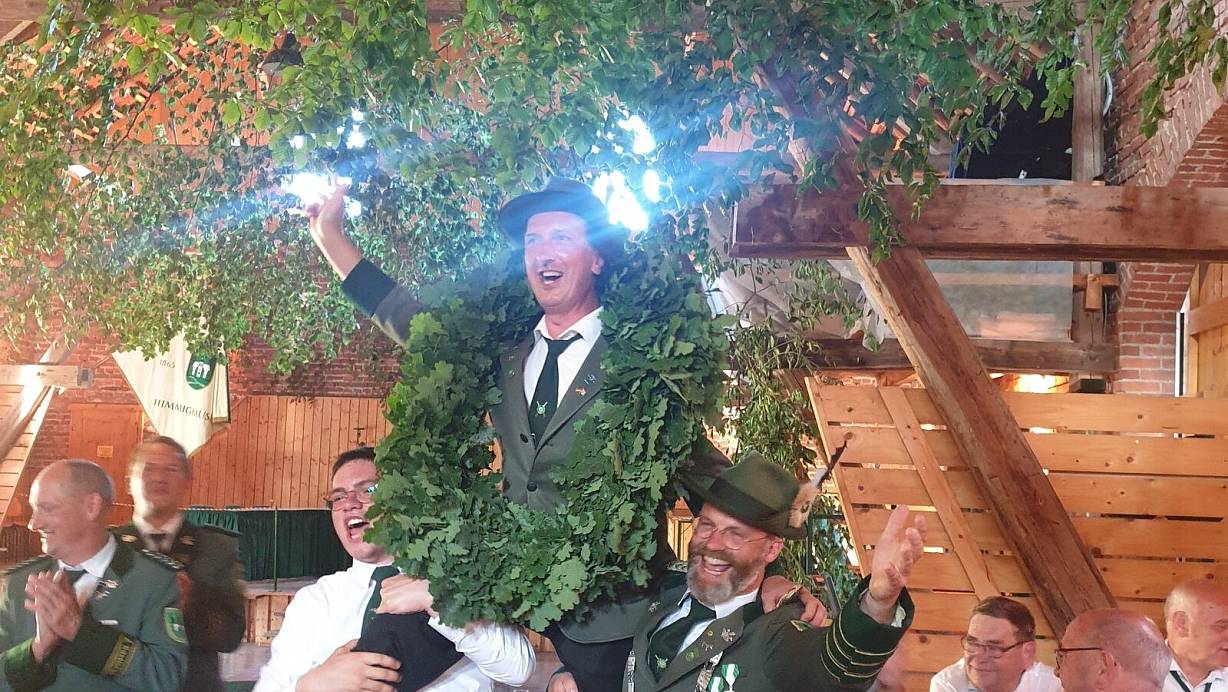 Nieheim-Himmighausen. Mit großer Vorfreude und bei herrlichstem Sonnenschein warteten viele Himmighäuser auf das Königsschießen. Nach zweijähriger Pause war die Sehnsucht nach Normalität riesengroß und so konnte der Vorstand nach eigenen Angaben „erstaunlich viele Schützen zum Antreten“ begrüßen. Nach einem Rundmarsch mit Abholung des scheidenden Königs Martin Gerling, eröffnete Andreas Weberbarthold sein erstes Königsschießen als neuer Vorsitzender des Heimatschutzvereins mit einer kurzen Ansprache. Im Stechen eines spannenden Wettkampfes setzte sich Peter Süper durch und erlangte die Königswürde.