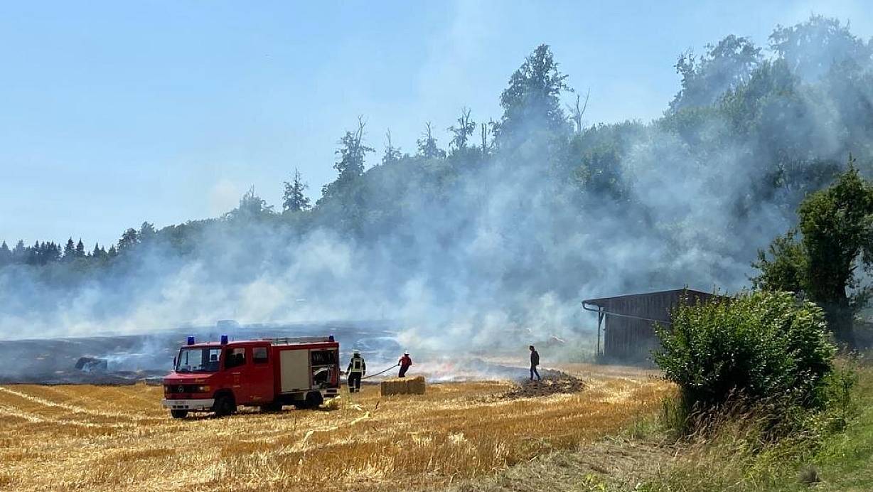 Auch im Ortsteil Erwitzen ist eine Ballenpresse in Brand geraten. | © Ariane Mönikes