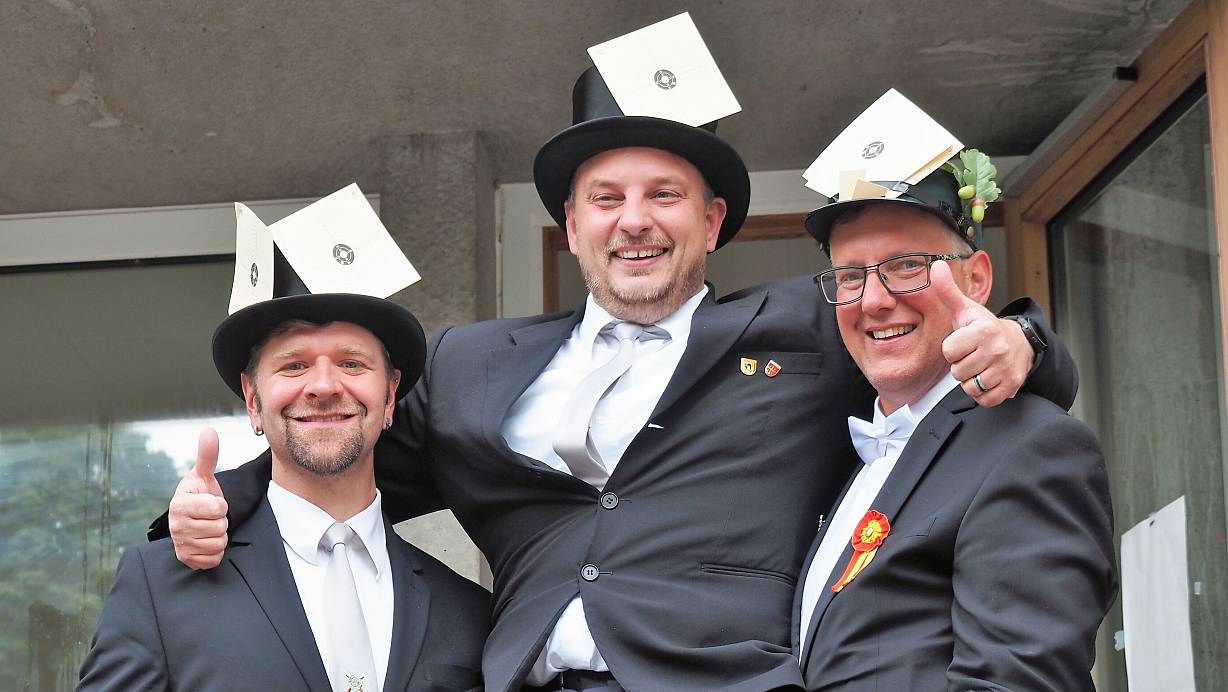 Die beiden stärksten Mitbewerber lassen den neuen König Sebastian Wessler hochleben. | © Josef Köhne