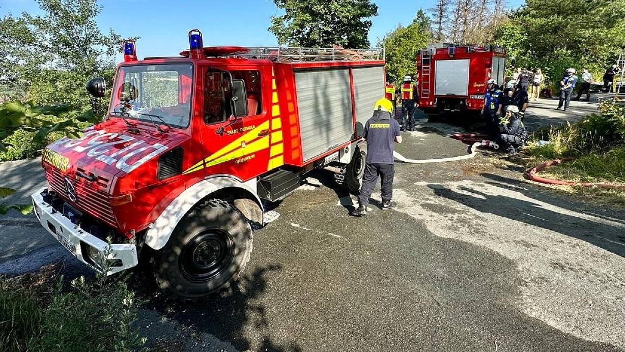 550 Feuerwehrleute schuften bei sengender Hitze auf dem Kamm des Eggegebirges