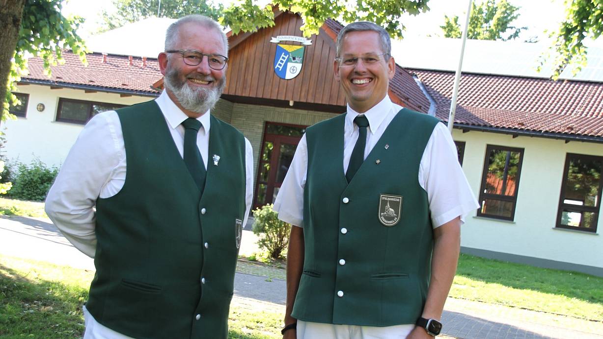 Bernd Unruhe (links) ist seit 50 Jahren Mitglied im Sommerseller Spielmannszug – ein Rekord. Das freut auch den Vereinsvorsitzenden Christian Pamme. Im örtlichen Dorfgemeinschaftshaus üben sie regelmäßig mit rund 30 weiteren Spielern ihre Lieder. Fotos (3): Madita Schellenberg | © Madita Schellenberg