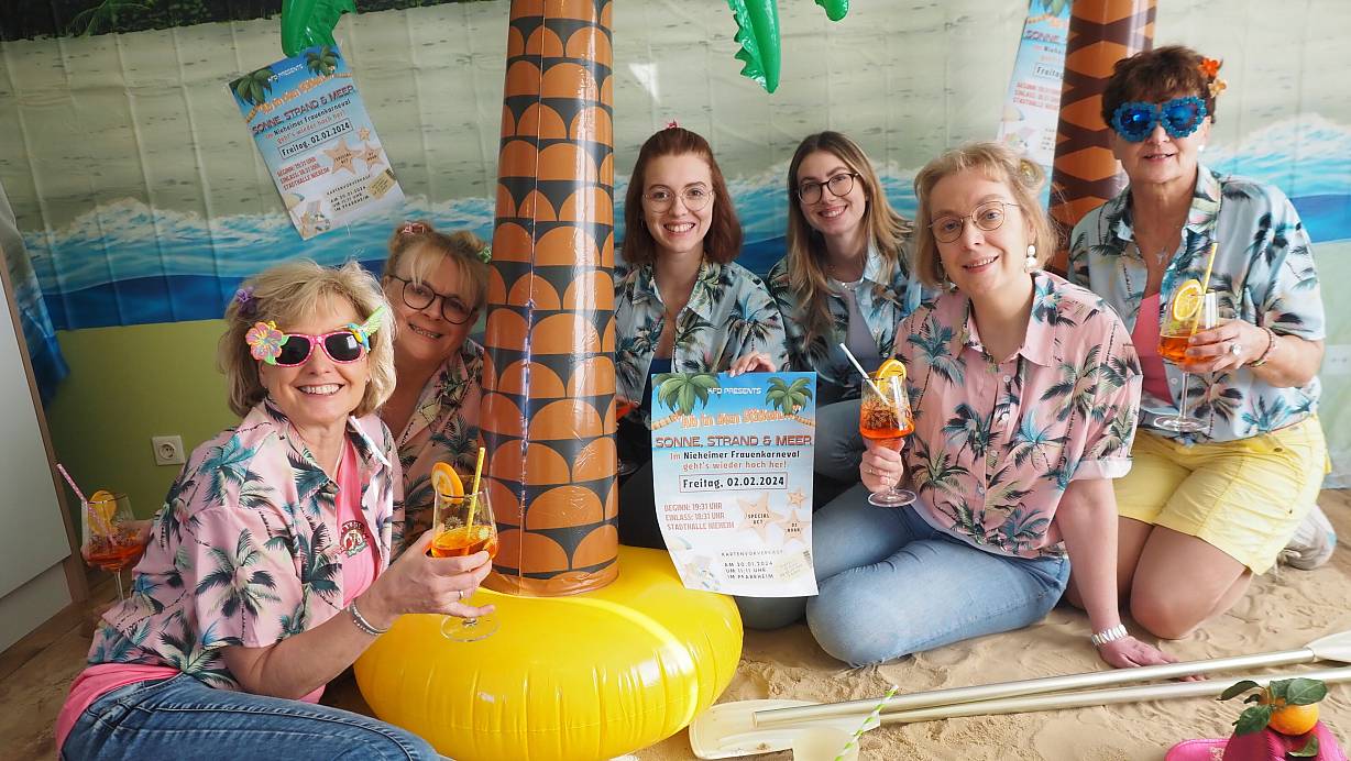 Nieheim. Keinesfalls will das Nieheimer Frauen-Karnevals-Komitee in dieser Session an der Emmer baden gehen. Es zieht vielmehr leicht bekleidet dorthin, wo Sonne, Sand und Meer sich treffen, nämlich in den heißen Süden. Auf südliche Temperaturen wollen Birgit Peine, Conny Peine, Lisa Rose-Meier, Jutta Nagel und die beiden neuen Karnevalistinnen im aktiven Team des Komitees, Miriam Scholle und Johanna Kunstein, ihre Gäste auch am Freitag, 2. Februar 2024, bringen, wenn es in der Stadthalle Nieheim um 19.31 Uhr heißt: „Sonne, Strand und Meer – Im Nieheimer Frauenkarneval geht’s wieder hoch her!“