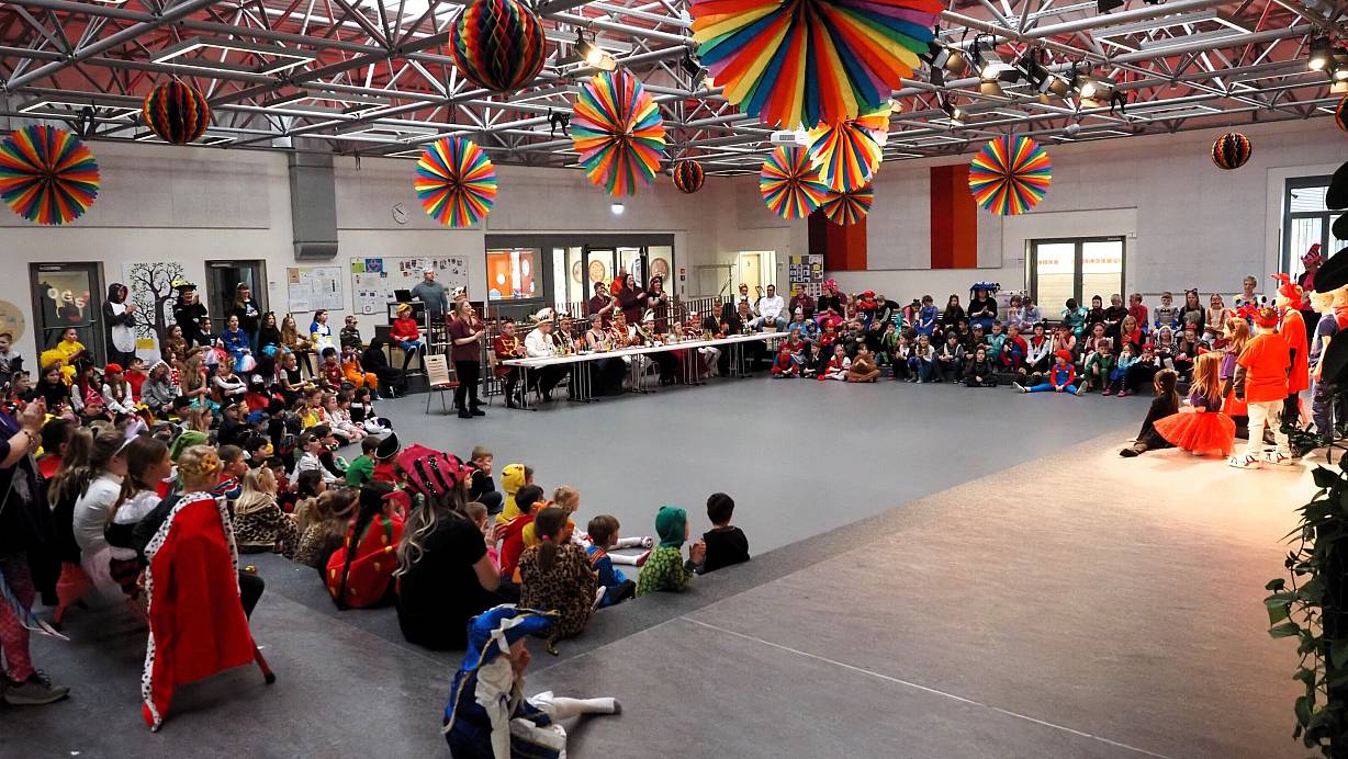 Im kunterbunten Programmablauf ging es in der toll geschmückten Aula um flotte Tänze, Klatschlieder, Geschicklichkeitsspiele und ein „Wetten dass “, bei dem das große gegen das kleine Prinzenpaar antreten musste. Dass die Grundschüler in Nieheim auch zu guten Diplomaten erzogen werden, zeigte das Spielergebnis. Es lautete „unentschieden“ und führte zu einem noch fröhlicheren Miteinander.
