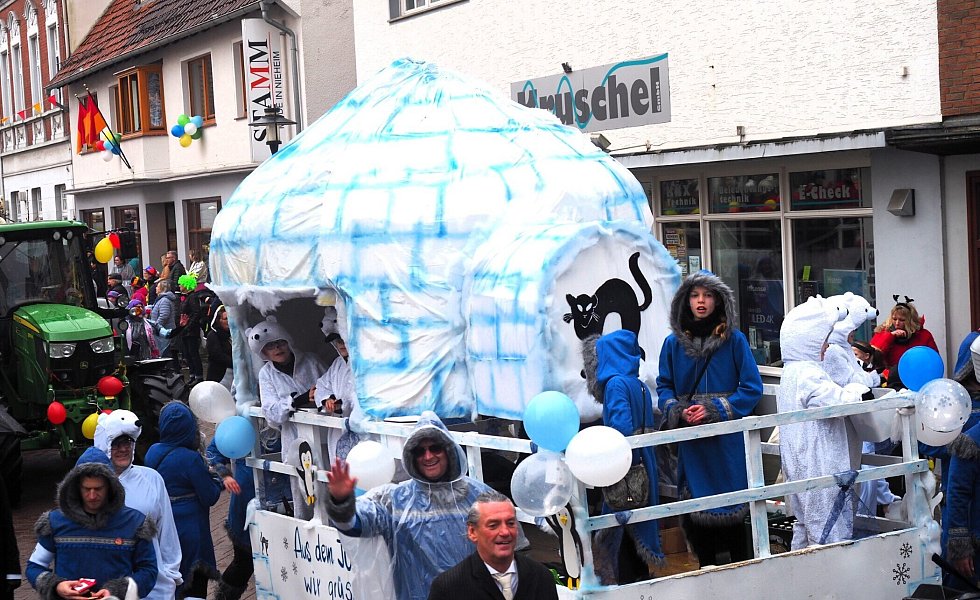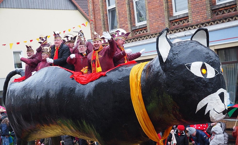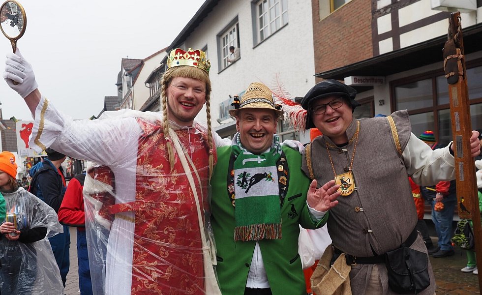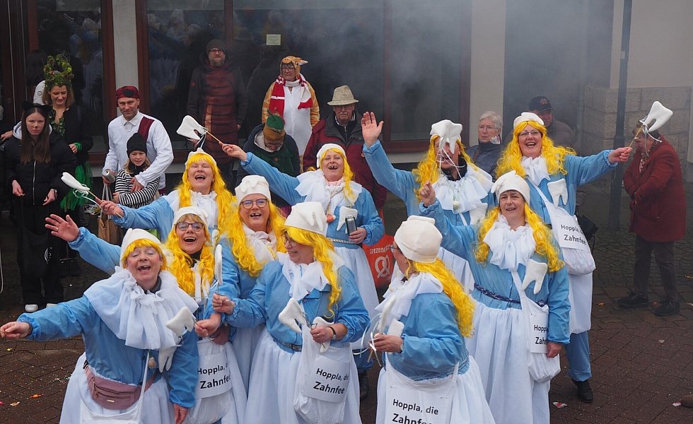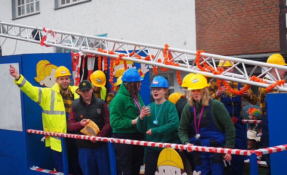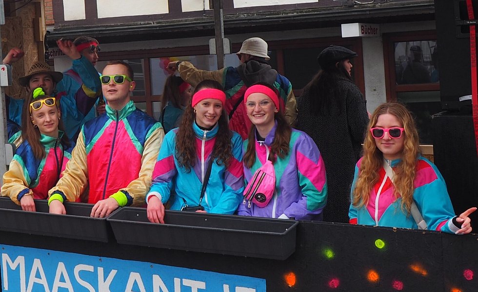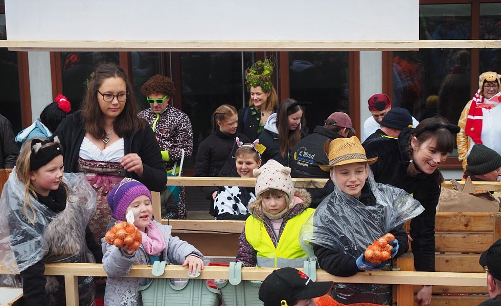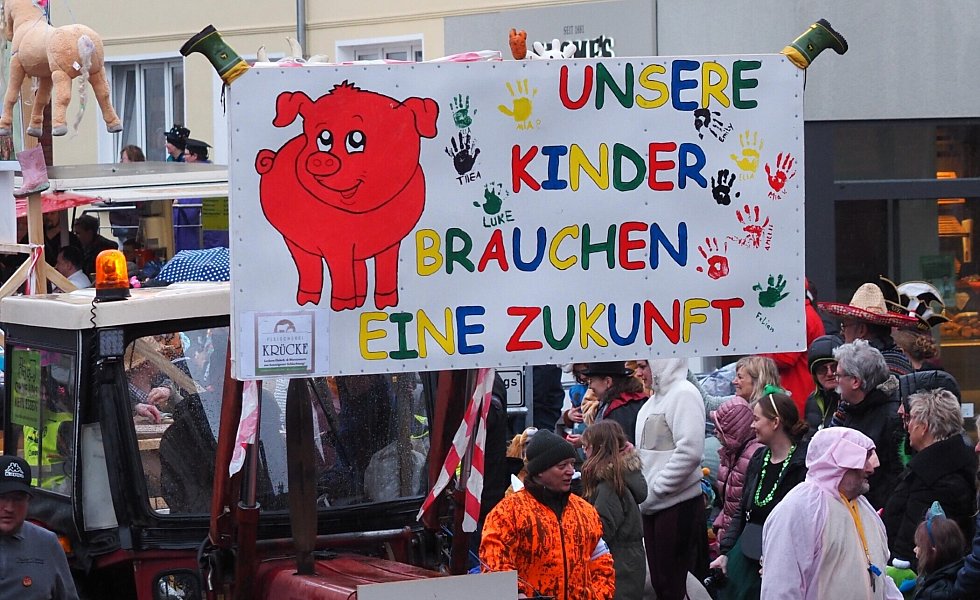 Zentnerweise flogen Bonbons, Bananen, Vitamine und Zwiebeln unters Volk und ließen die Taschen der fleißig Sammelnden rasch voll werden. Für anerkennende Begeisterung sorgten die Themenwagen von Bauerndiesel, Malle-Tourismus, Bob dem Baumeister, die „New Kids“ oder die Ampel-Kritiker. Die Show stahl in diesem Jahr aber bei allen fahrenden Narren der neue Kinderprinzenwagen, der in Form einer Narrenkappe durch den historischen Stadtkern rollte.