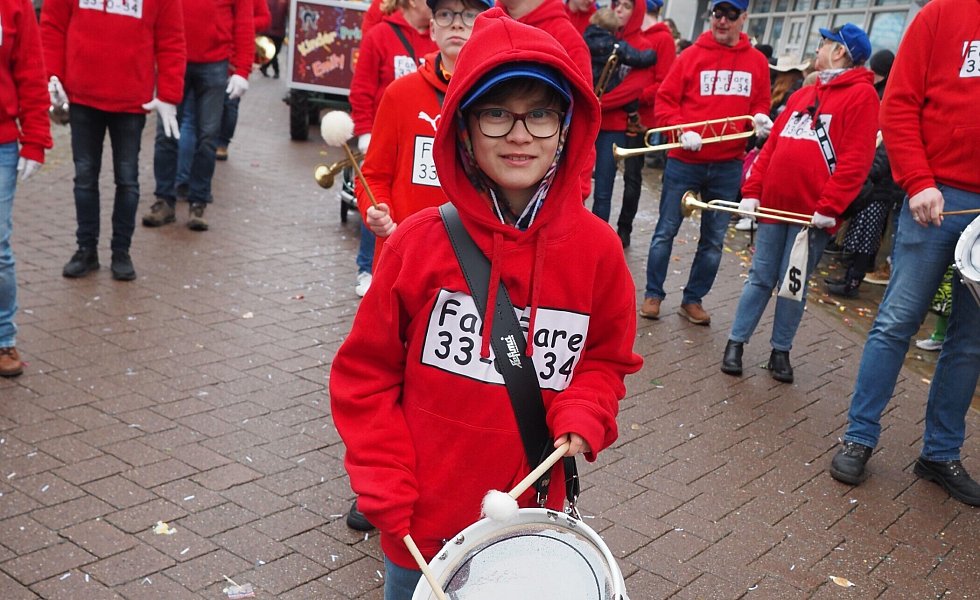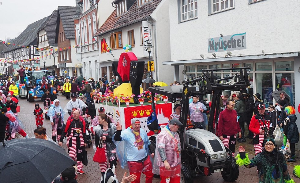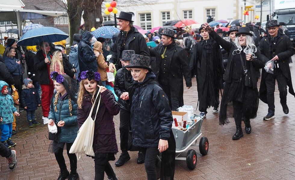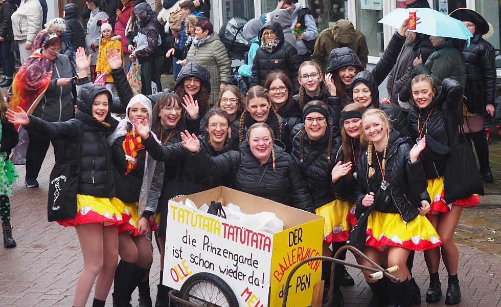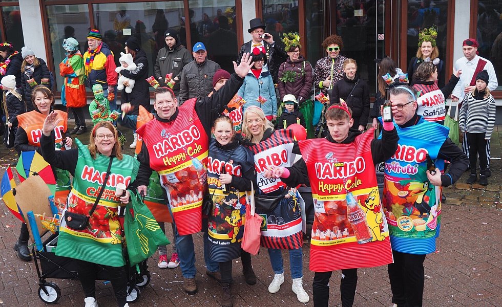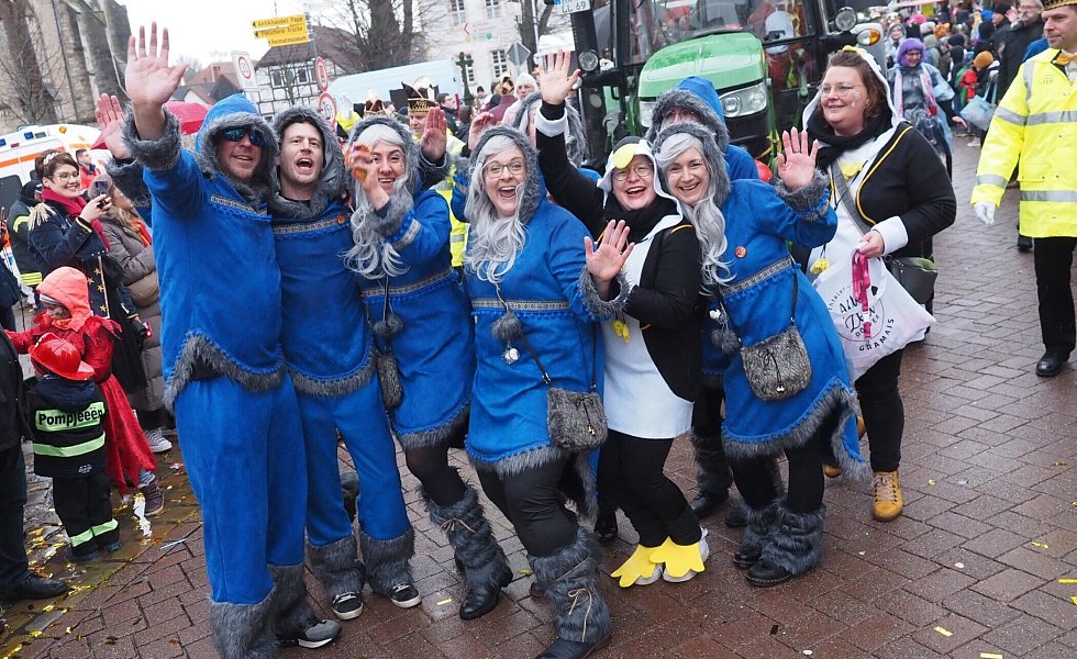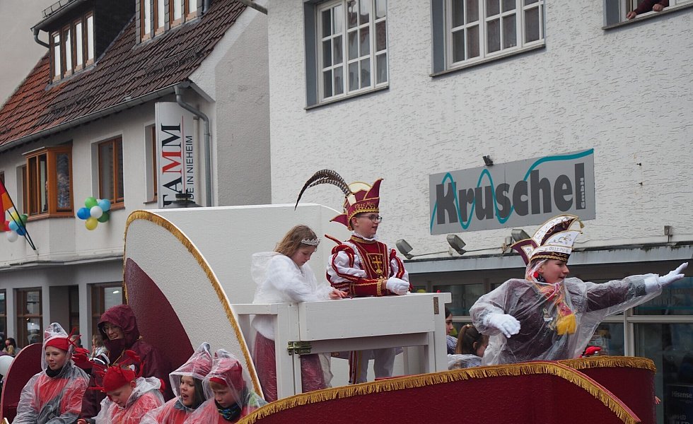 Bützchen gab es zu den Bonbons bei den vielen bunten Fußtruppen. Sie kamen unter anderem aus Merlsheim, Sommersell, Holzhausen, Ovenhausen und Himmighausen. Für die flotte Karnevalsmusik sorgten bei der NKG die Blaskapelle Brakel, der Fanfarenzug Brakel sowie die Spielmannszüge aus Entrup und Lemgo.