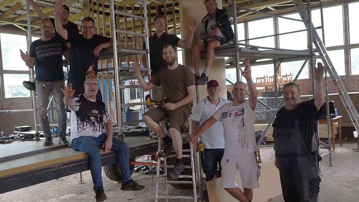 Bis es jedoch soweit ist, haben Elmar Lohre, Thomas Filter, Frank Bertram, Maximilian Fröhling, Dirk Guse, Gerd Peine, Bernhard Schröder, Jürgen Krawinkel, Marcel Wessler und Johannes Valtinke noch alle Hände voll zu tun und so manches Fläschchen zu leeren. Gebaut wird der neue „von Eichholz“-Prinzenwagen in der ehemaligen Reithalle von Gut Externbrock.