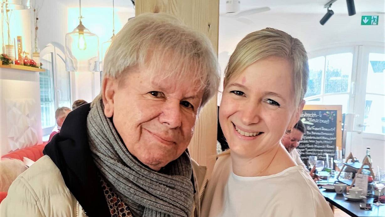 G. G. Anderson mit „Heiter bis lecker“-Geschäftsführerin Sarah Wesdijk in Steinheim. | © David Schellenberg