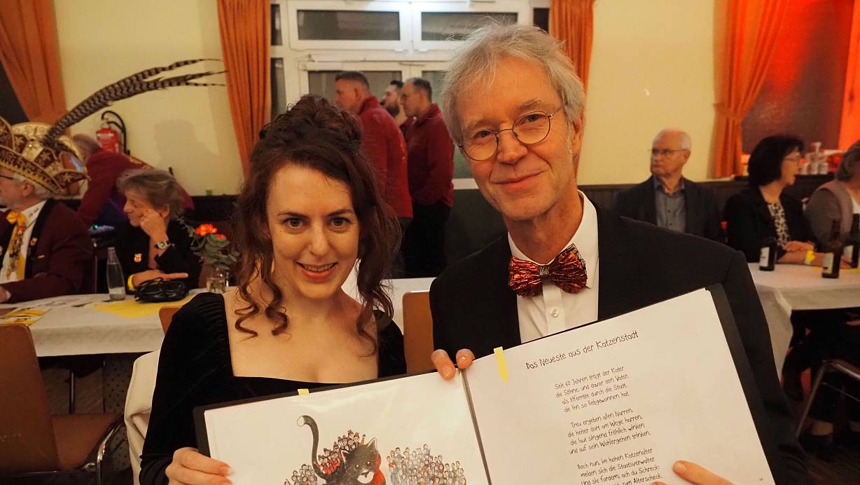 Die Künstlerin Sabrina Kunz und der bekannte Sänger und Chorleiter Volker Schrewe präsentierten die von Josef Köhne geschriebene „Närrischste Liebesgeschichte aus der Katzenstadt Nieheim.“ | © Josef Köhne