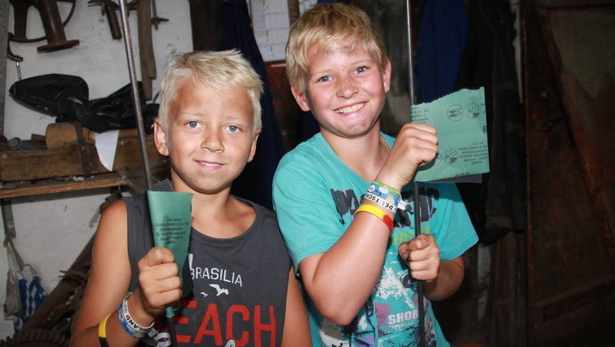 Gemeinsam mit Otto gestalteten die Kinder in der "J & T Otto Schlosserei" dekorative Gartenstecker mit Kugeln. Dazu haben die Teilnehmer einzeln Eisenstangen im Feuer erhitzt und mit Josef Ottos Hilfe das obere Ende der Stange mit einem Hammer abgeflacht. Immer noch heiß, wurde dieses Ende dann in eine Schneckenform gedreht. "Das ist das Schwierigste bei der Gestaltung der Stangen", sagte Junghandwerker Henning, "die Herstellung der Gartenstecker ist insgesamt nicht leicht, aber machbar". Ihm gefalle die Veranstaltung sehr gut.