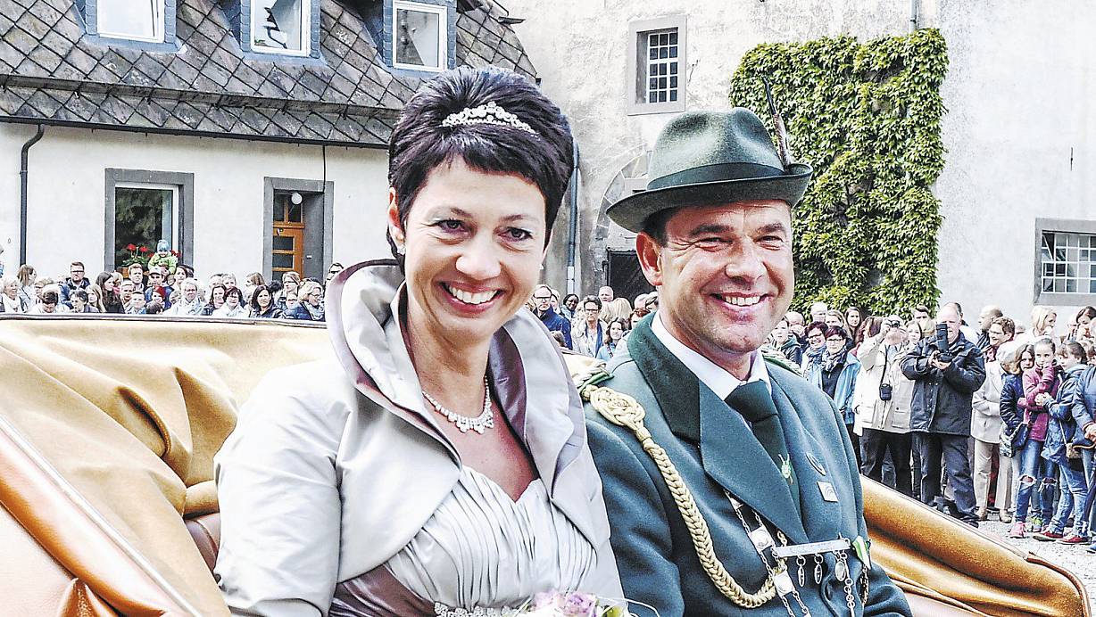 Repräsentant: Strahlenden Optimismus verbreitet Steinheims Bürgermeisters Carsten Torke als Schützenkönig der St.-Johannes-Schützenbruderschaft Vinsebeck an der Seite seiner Gattin und Königin Marion. | © Josef Köhne