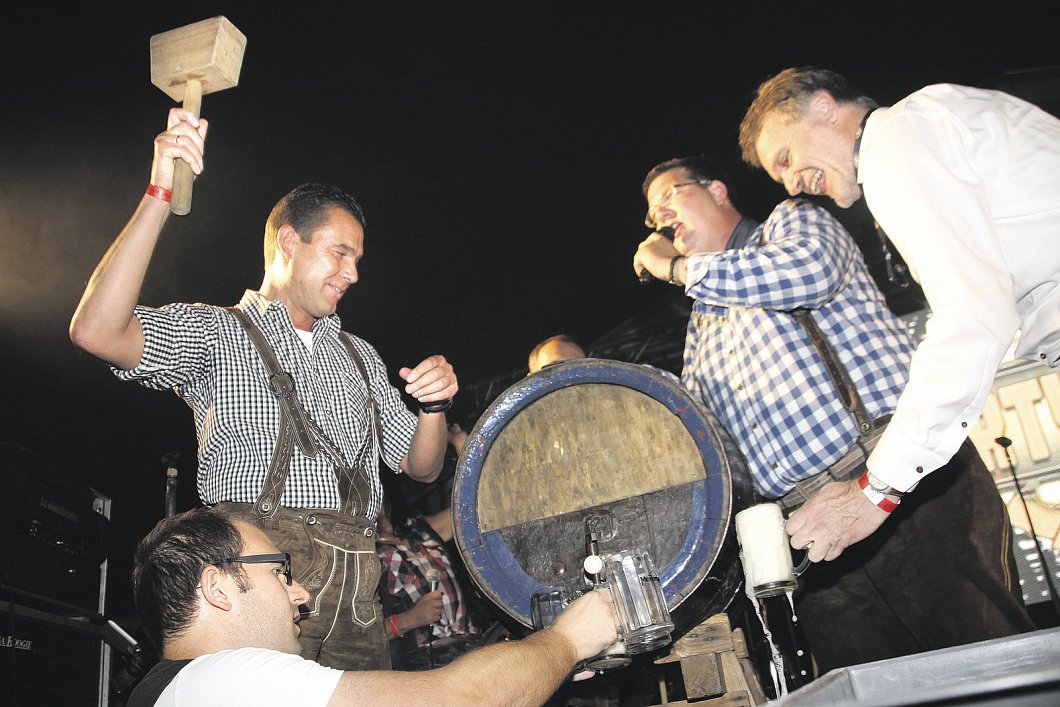 Noch bevor Steinheims Bürgermeister Carsten Torke zum ersten Mal mit dem Holzhammer auf den Zapfhahn des ersten Bierfasses schlug, gab es für die weit mehr als 1.000 Gäste kein Halten mehr. Sie tanzten bereits ausgelassen bei den ersten Klängen der Bands "Partyfürsten" und "Gaudirocker", die den Besuchern auf zwei Bühnen ordentlich einheizten.