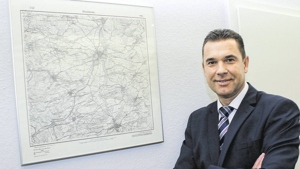 Im Büro: Carsten Torke neben einer Karte von Steinheim mit den Ortschaften - ihm liegt die Entwicklung beider am Herzen, sagt der 50-Jährige. | © Simone Flörke