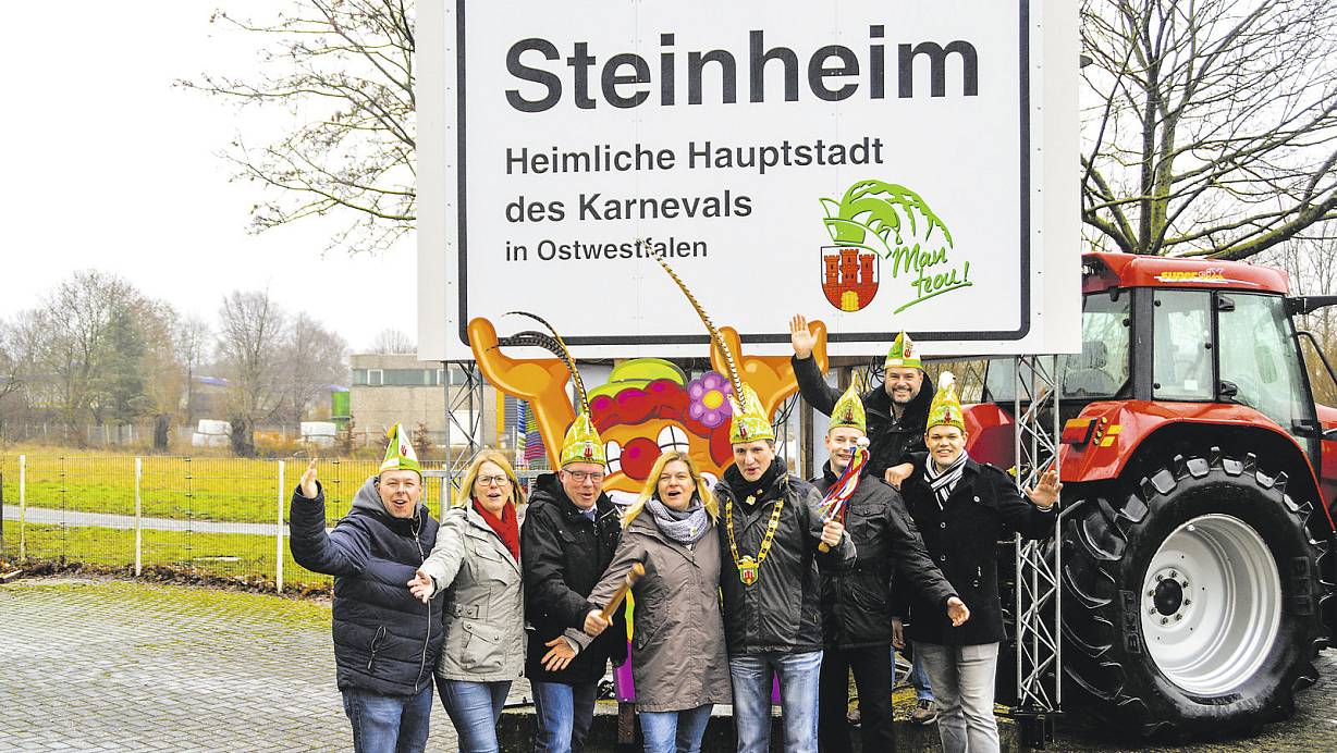 Zum elften Mal werden Autofahrer von der Ostwestfalenstraße auf die heimliche Karnevalshauptstadt Steinheim Ostwestfalens hingewiesen. „Sinn der Sache ist, dass Autofahrer signalisiert bekommen, wo die Karnevalshauptstadt ist. Komplementiert wird das durch den Clown, der das Schild in die Höhe hält", sagte Dominik Thiet, Präsident der Steinheimer Karnevalsgesellschaft.